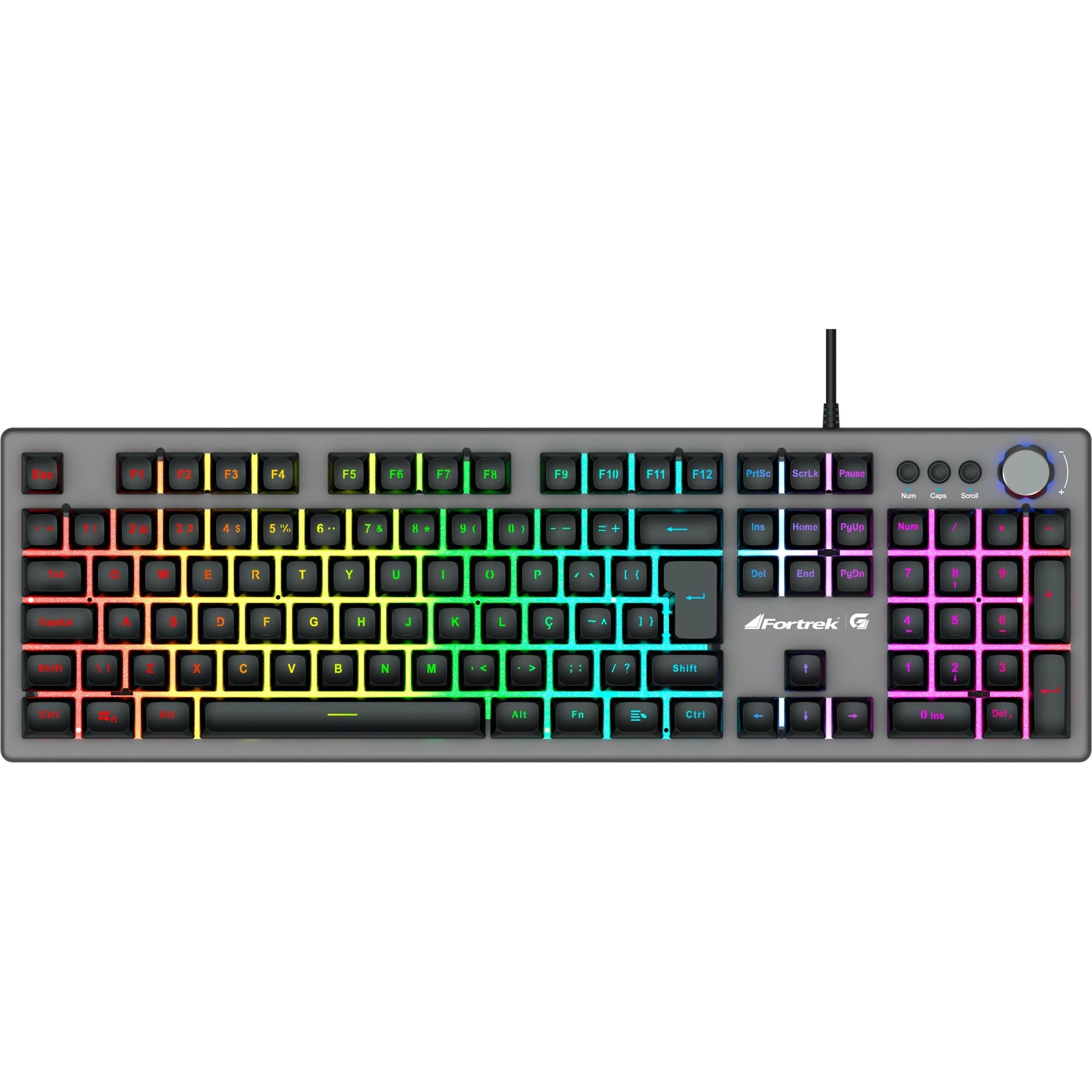 O TECLADO HOLT TEM UMA CONSTRUÇÃO IMPECÁVEL EM ALUMINÍNIO, SEGUE COM 6 OPÇÕES DE ILUMINAÇÃO, CONEXÃO USB COM CABO DE 1,5M, KNOB COM FUNÇÃO DUPLA (MULTÍMIDIA OU CONTROLE DE ILUMINAÇÃO). FORA AS TECLAS DE ATALHO. REALMENTE UM DOS MAIS COMPLETOS DA CATEGORIA.