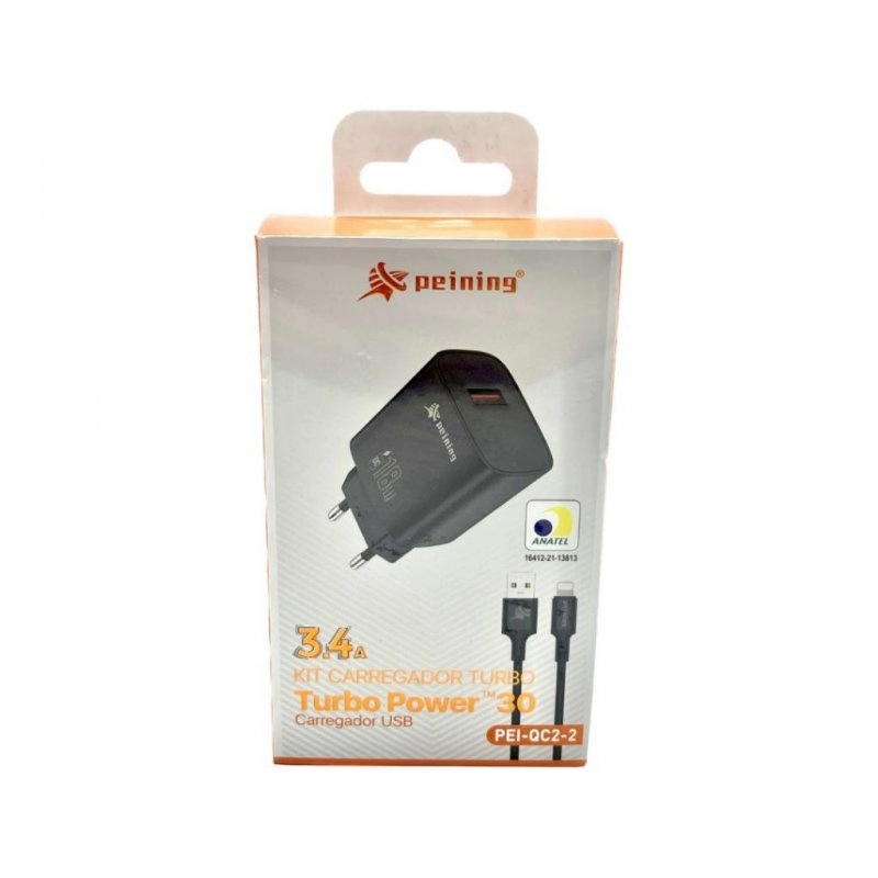 UMA ÓTIMA OPÇÃO PARA CARREGAR SEU IPHONE, ESSE MODELO POSSUÍ CABO DE 1 METRO DO TIPO LIGHTNING, CERTIFICADO PELA ANATEL. SUA POTÊNCIA É DE 18W, 3.4A.